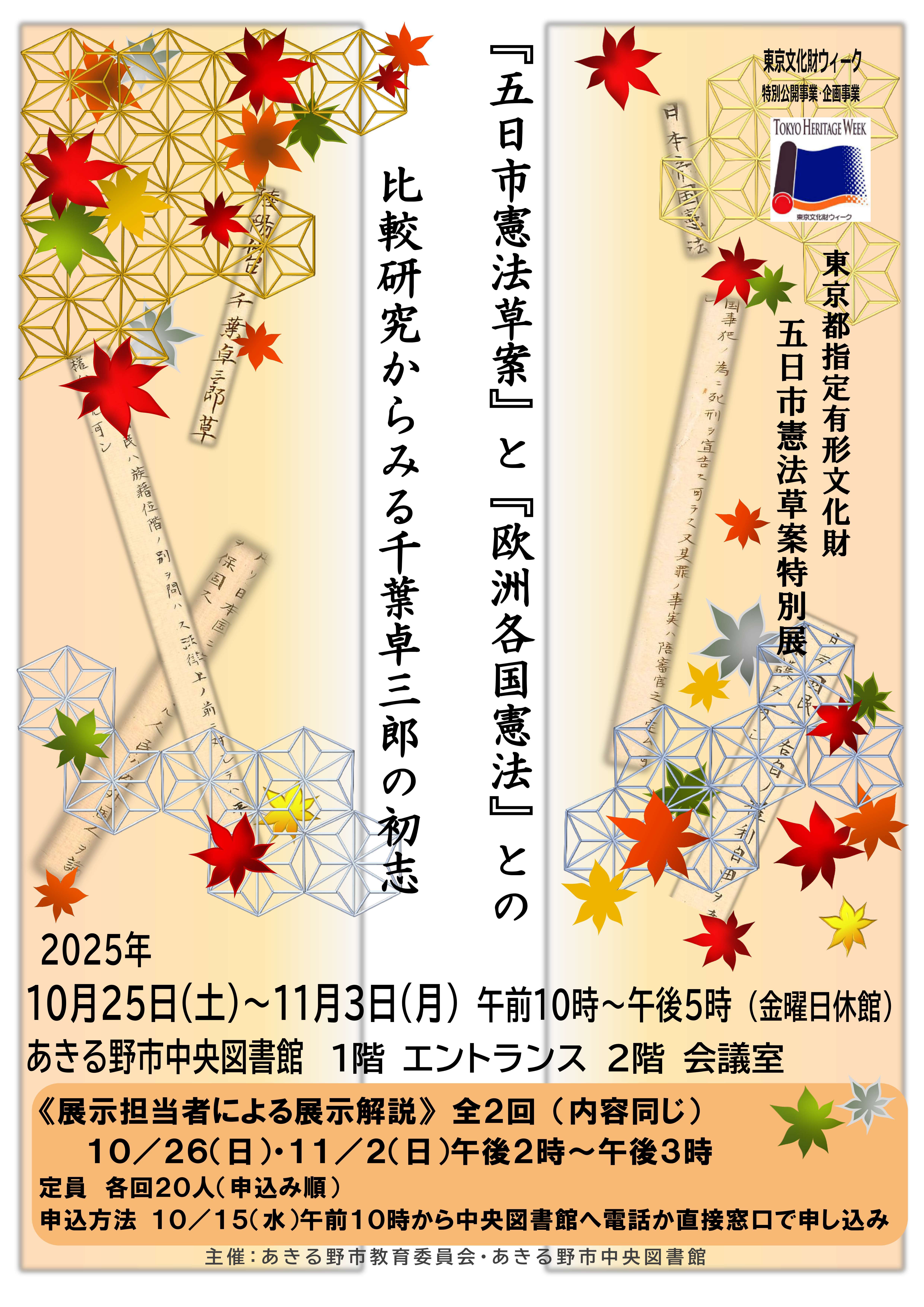 五日市憲法草案特別展「『五日市憲法草案』と『欧州各国憲法』との比較研究からみる千葉卓三郎の初志」