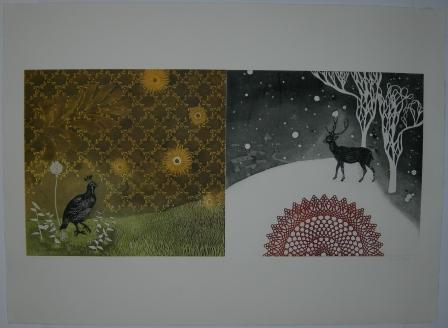 ◇子供の記憶の曖昧さと夢を版画で表現。