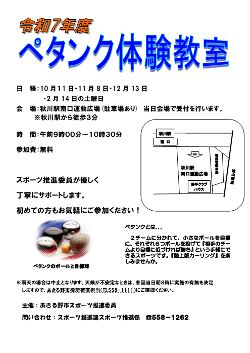 電話: 代表042-558-1111 スポーツ推進係 内線3016、3017