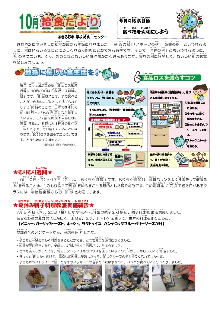 あきる野市の学校給食は栄養バランスのとれた、おいしくて安心・安全な給食を目指しています!