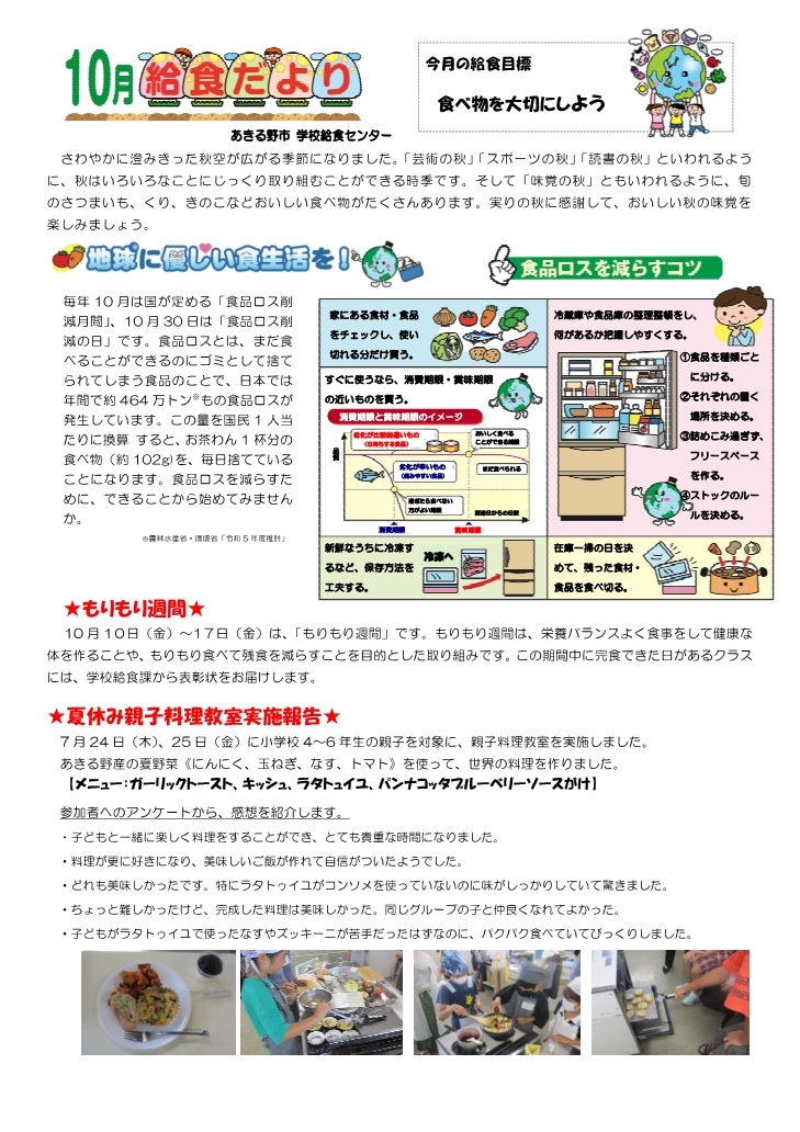 令和7年10月の献立表・給食だより・学校給食の食材産地について