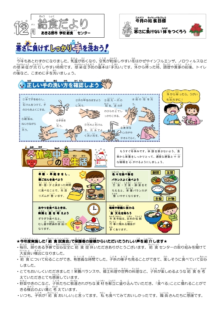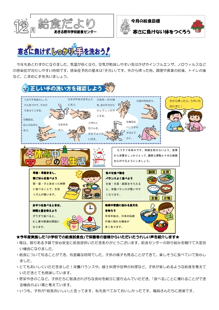 令和7年12月の献立表・給食だより・学校給食の食材産地について