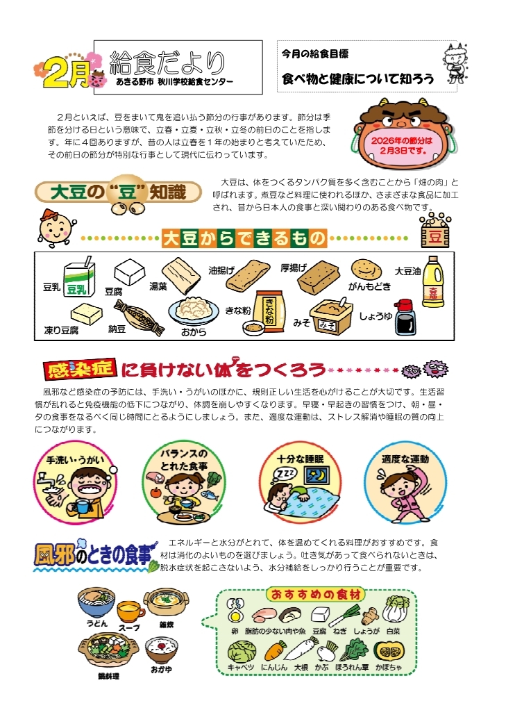 令和8年2月の献立表・給食だより・学校給食の食材産地について