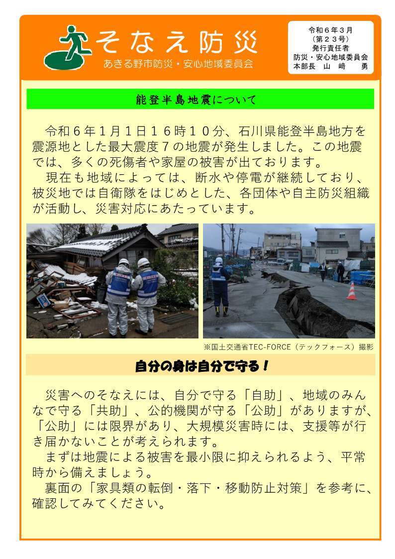能登半島地震について/自分の身は自分で守る!/家具類の転倒・落下・移動防止対策