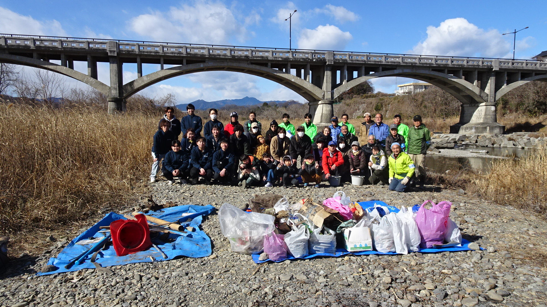 総勢43人でごみ拾いを行い、可燃8袋、不燃3袋、粗大ごみ(壊れた釣り竿、廃材、カラーコーンなど)を回収しました。ご協力ありがとうございました。