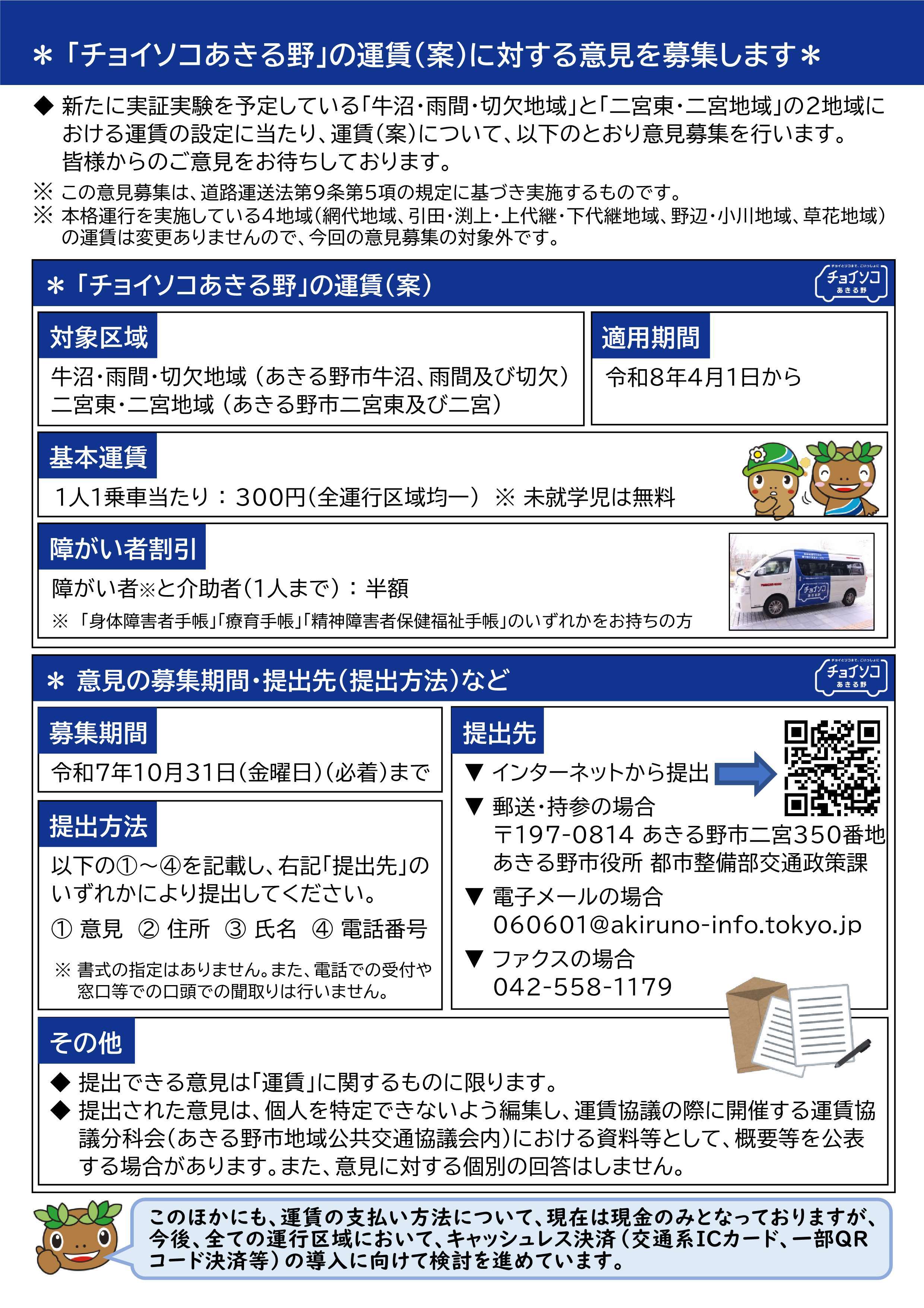デマンド型交通「チョイソコあきる野」の内容については、以下のリンク先からご覧いただけます。