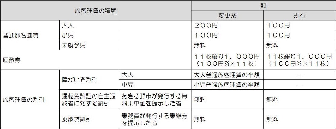 提出された意見は、個人を特定できないよう編集し、運賃の協議の際に開催する運賃協議分科会(あきる野市地域公共交通協議会内)における資料等として、概要などを公表する場合があります。