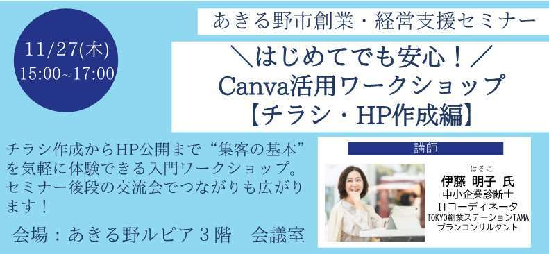 【受付終了】あきる野市創業・経営支援セミナー Canva活用ワークショップ