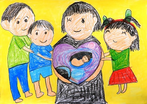母が病院についてすぐ、妹は1030グラムという両手に乗る位の小さな小さな体で誕生した。誕生後すぐに救急車で大きな病院に運ばれ新生児集中治療室(NICU)に入院した。NICUにはいろいろな決まりがあり、兄や私の様な子どもは入室できない。だから、私が初めて妹を見たのは父が撮ってきてくれた写真である。保育器に入れられた妹の小さな体には沢山の管が繋がれていて口には酸素マスク、目には目隠しをされ治療のため青い光に当たっていた。その写真を見た時、胸がギュウっと締め付けられた。こんなに小さい体で精一杯生きようと戦っている妹の姿を応援する事しか出来ない自分が歯がゆかった。早く抱きしめてあげたい。早く一緒に遊びたい。数か月前まで妹も弟も欲しく無いと思っていた私はそこにはいなかった。姉になったしゅん間だったと思う。