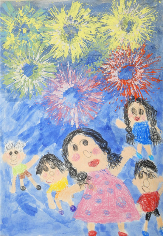さいしょのころ、わたしは知りませんでした。お姉ちゃんたちといっしょに、お母さんによばれて家で話をはじめてききました。