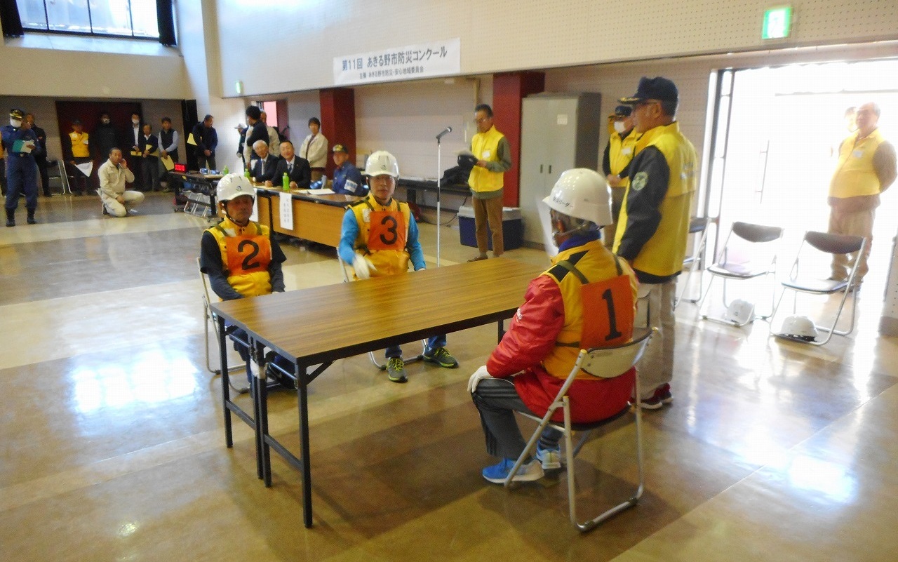 令和6年12月8日(日曜日)に、第11回あきる野市防災コンクール(主催:あきる野市防災・安心地域委員会)が開催されました。一般の部12チーム、中学生の部6チーム、増戸小学校が出場し、実践的な地震の初期対応や消火・救助活動などを、披露しました。