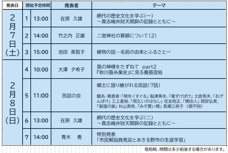 ●内容…「市内探訪」、各自主勉強会等活動報告、「心惹かれるあきる野の自然と文化」、