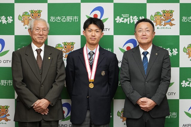 西中学校出身の寺内 頼選手(拓殖大学第一高等学校3年生)が表敬訪問され、所属する同校陸上競技部が、11月3日に行われた「男子第76回全国高等学校駅伝競走大会都予選」において優勝したこと及び寺内選手が第4区区間賞を獲得したことを報告していただきました。