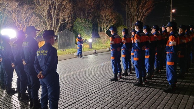 市役所東側玄関前のロータリーにて、消防団の歳末特別警戒に対する激励に出席しました。