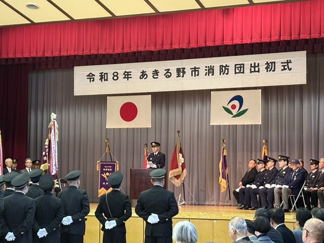 五日市会館で、あきる野市消防団出初式を開催しました。