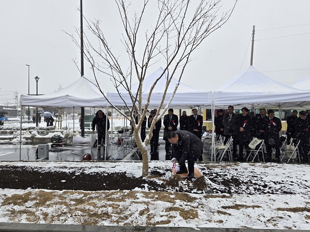 当日は雪の降りしきる中ではありましたが、多くの子どもたちや保護者の方、地域の皆さんと一緒にテープカットを行い、地区の中心となる駅前広場をお披露目できましたことを大変うれしく思っております。