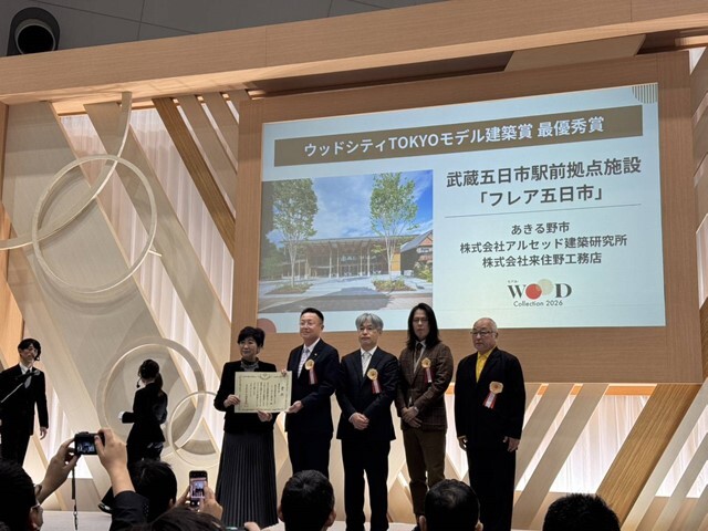 東京ビックサイトで開催された、WOODコレクション(モクコレ)2026 ウッドシティTOKYOモデル建築賞表彰式に出席しました。