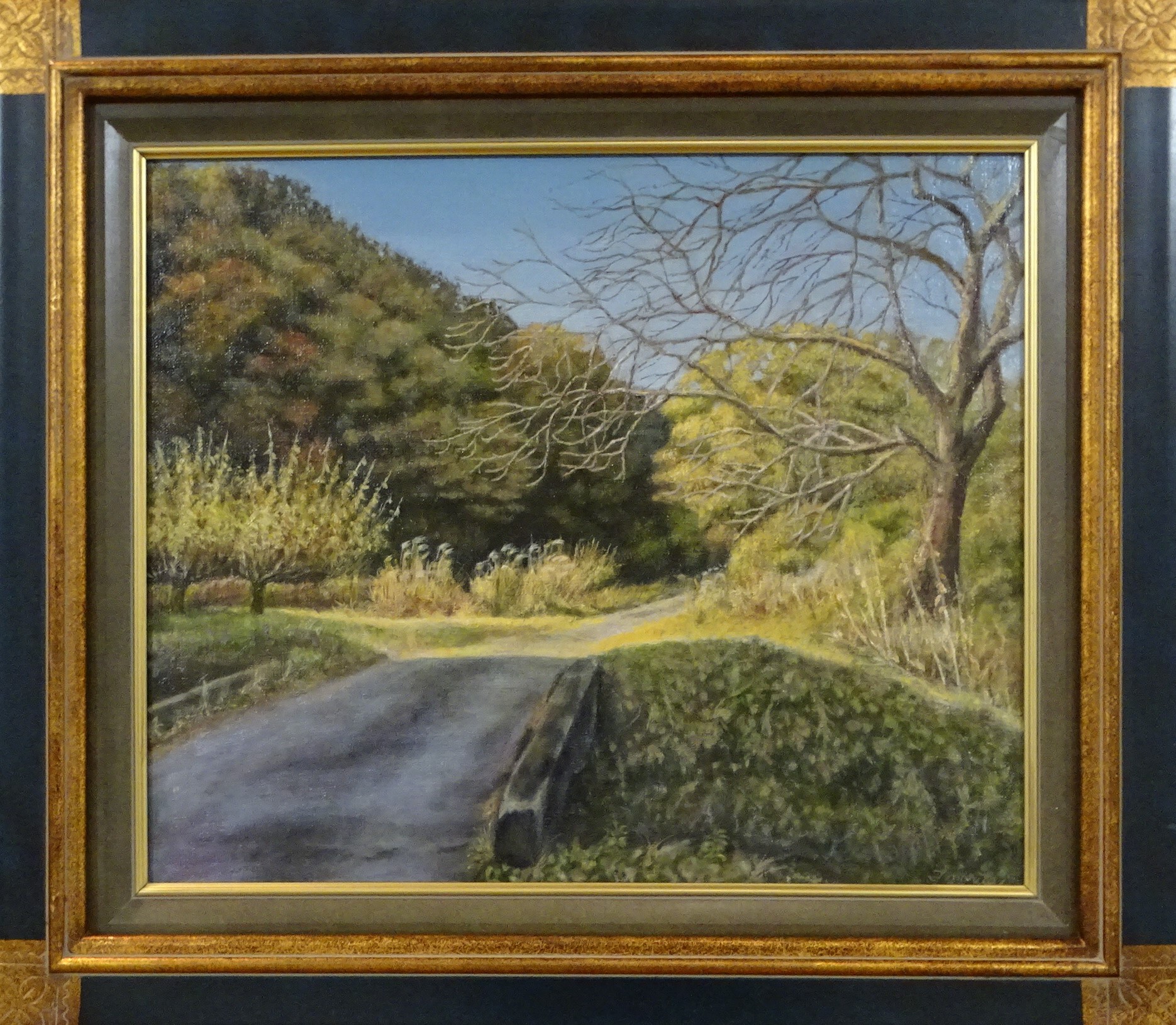 秀作「秋川河畔農道散歩」 油彩 F-8 森田利明