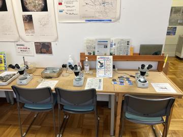 多様な地形と地質からなる展示はもちろん、各種パンフレットもたくさん並んでいます。
