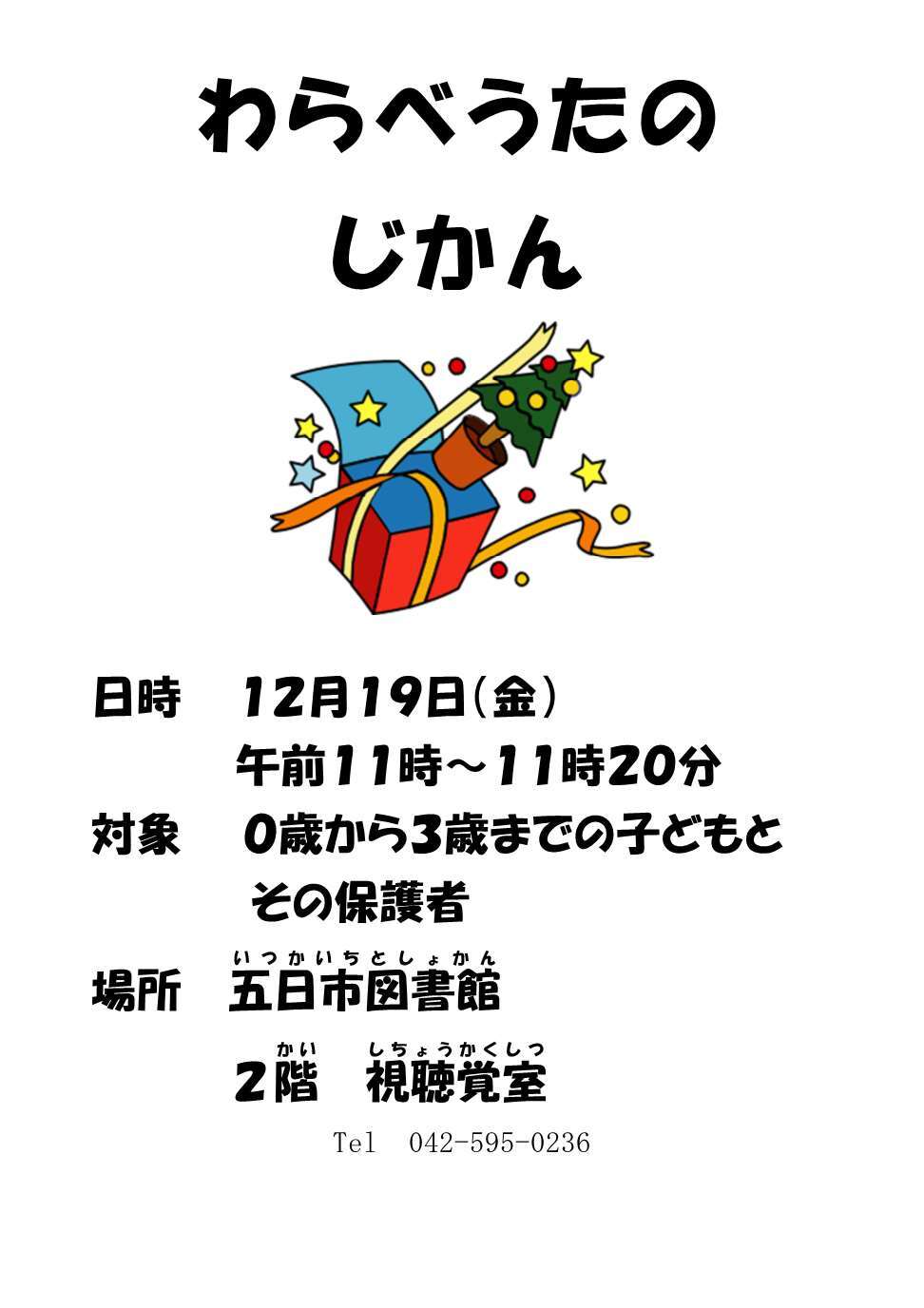 電話: 代表042-558-1111 こども政策係 内線2681/手当助成係 内線2641 /児童館係 内線2682